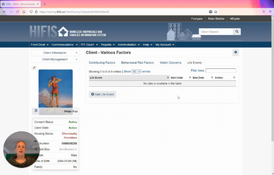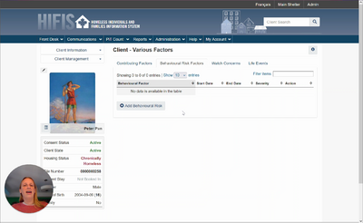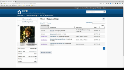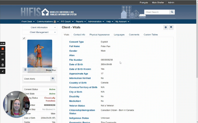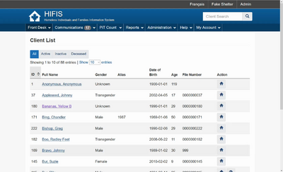 Clients are what HIFIS refers to as service recipients. Any person you provide assistance to at your service provider is called a Client in HIFIS. Pulling up a client file will allow you to access information about them, ranging from their contact information to the services they've received.